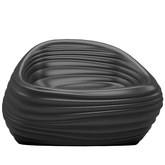 Soft touch lounge chair suitable for indoor and outdoor use. Self supporting frame in integral polyurethane foam.